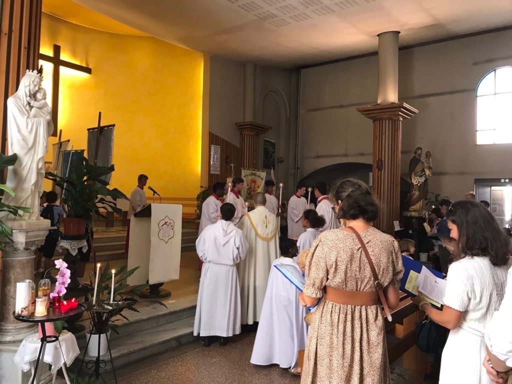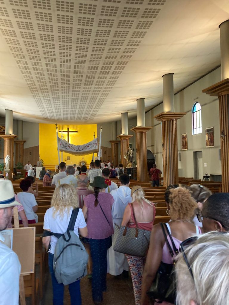 “Une atmosphère joyeuse plane dans l’Eglise du Port, en cette assemblée ravie, ce dimanche matin 19 juin 2022 dans l’attente de la Très Sainte Messe et la Procession qui va suivre !
