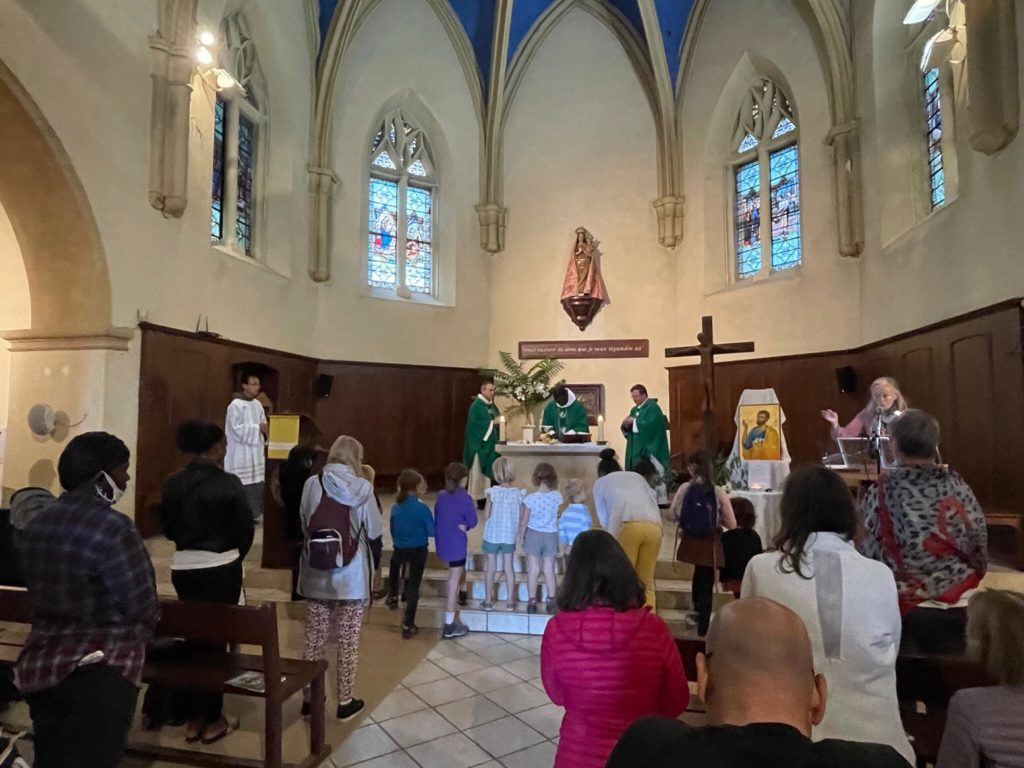 Nous nous retrouvons à 11h30 pour la messe du jour, présidée par un père de la Communauté des Frères de Saint Jean et concélébrée par les prêtres de Nice.